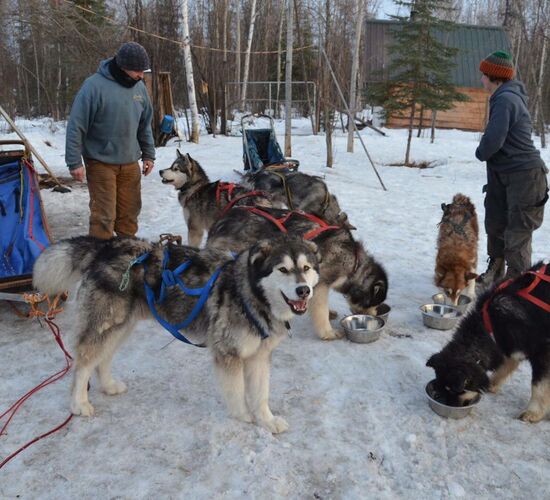 Bevor Sie sich mit einem leckeren Frühstück stärken, sind Ihre treuen Freunde für die kommenden Tage dran. Gemeinsam füttern Sie die Hunde. Danach frühstücken Sie gemeinsam im Haupthaus. Dann geht es auch schon los zur Einführungstour mit den Alaskan Malamuts: Sie erlernen die Handhabung des Schlittens und der Ausrüstung. Die Einführungstour führt Sie ca. 25 Meilen durch die tief verschneite Wildnis Alaskas.