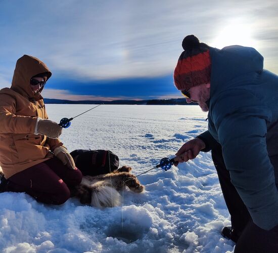 Heute packen Sie nach dem Frühstück Ihre Ausrüstung und brechen zu einer zweitägigen Tour in die Wildnis auf. Von engen, kurvigen Pfaden, auf die gerade so ein Hundeschlitten passt, über weite gefrorene Seen und Sümpfe, präsentiert sich der hohe Norden auf Ihrer Route von seiner schönsten Seite. Unterwegs machen Sie Halt für ein Mittagessen am Lagerfeuer, bevor Sie nachmittags Ihr Ziel erreichen. Hier kümmern Sie sich zuerst um Ihr Husky-Team, untersuchen die Pfoten, geben ihnen eine Massage und füttern sie. Die Aufgaben, die anstehen, werden Sie gemeinsam als Gruppe erledigen. So muss ein Loch in die Eisschicht des Sees für frisches Wasser zum Kochen und Trinken gebohrt, ein Feuer im einfachen Holzofen gemacht und schließlich das Abendessen vorbereitet werden. Wer möchte, kann die Umgebung auf Schneeschuhen erkunden oder auf dem See eisfischen. Die Nacht verbringen Sie in einer rustikalen Wildnishütte oder einem beheizten Tipi-Zelt.