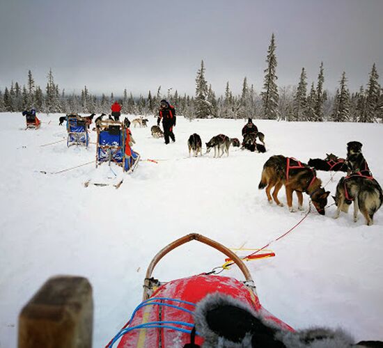 My wife and I gave each of our children a special "14 year old adventure" for their 14th birthdays, and my son wanted to go dogsledding. We searched around on the Internet for places to go, and I found HeyHusky and Petter Karlsson. Everything was very easy to arrange, as Alwin at HeyHusky was extremely responsive and helpful in helping us with flights and transfers to the Lapland. Once there, the experience was unforgettable. From the moment we met our guide, Adam, everything was perfect. The dogs were well taken-care of and flawlessly trained. Being from Colorado, the snow was no problem for us, but neither my son nor I had ever experienced dogsledding before. That was no problem! We were easily taught what we needed to know, and after a brief introduction and initial stay in the base house, we were off the next morning on our adventure. The northern lights in April were amazing! The trip consisted about about 30-50k of sledding each day, and staying in a new hut each night. The huts were warm and well-supplied. We participated in feeding and taking care of the dogs. The second hut even featured a wood-burning stove sauna! The views of the Swedish Lapland were beautiful, and we crossed frozen rivers and lakes multiple times. The photos I took are breathtaking. The food was all homemade, and the meat was from the local farm or from their hunting. The "Magic Moose" was extremely good!. I can't say enough great things about the HeyHusky and Karlsson Sled Dogs experience. My son loved the trip and we will remember it for the rest of our lives.