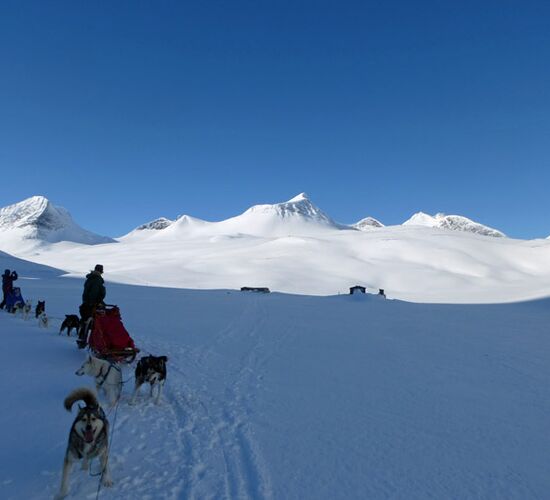 The first night of the tour will be spent at a log cabin in Nikkaluokta in the heart of Lapland’s mountains. Weather permitting; your cabin will have breathtaking views of Kebnekaise. You will then meet your experienced guide, receive instruction on how to lead your team of dogs, and get to know your very excited huskies! Your guide will brief you on the route of the tour, and all kit and equipment checks will take place.