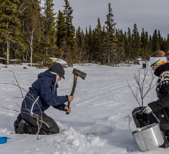 Afterwards you explore the closer surroundings of the camp with snowshoes or skis. Thereby you get a first impression of the beautiful landscape that awaits you the next days. Depending on your wishes and the weather conditions, the length of the hike can be adjusted.