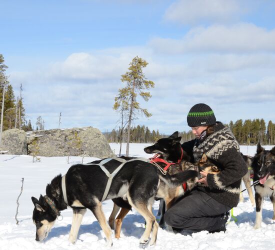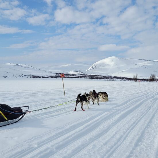 The daily distance you cover on the sleds is about 40 to 50 km. This will take you about 4 to 5 hours, or longer in bad weather conditions. When you reach your overnight place, you first take care of the dogs. They have worked hard and deserve a cuddle and good food! After that it's your turn. You will spend the nights in simple but charming wilderness huts where there is neither electricity nor running water, once even in a heated tent. Immerse yourself in the fascinating world of Swedish Lapland, which is far from conventional tourist offerings and requires your active participation.