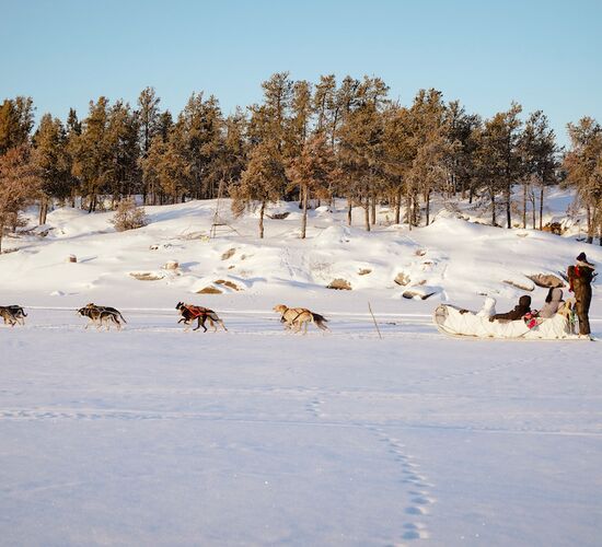 You start the morning with breakfast at Colville Lake B&B. Today, you will fly back to Yellowknife on a private charter flight. On the way, you will be treated to breathtaking views of the untouched wilderness. In Yellowknife, you will be taken to The Explorer Hotel and check into your room again. Lunch will be served at Bullock's Bistro. Rest up from the journey or explore the city on your own. Later in the afternoon, you will meet up again for an indigenous dog sled tour and can look forward to a ride over snowy trails. While your guide steers you safely through the winter nature, you sit comfortably in the front of the sled. For dinner, you will visit the Copperhouse, which is known for its wood-fired Northern cuisine. Maybe you can watch the dance of the Northern Lights afterward?