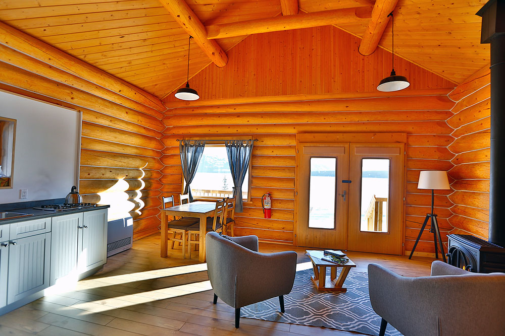 This cozy cabin is the perfect retreat for small families or group of friends. With a queen bed in a separate bedroom and two single beds in the open loft, it offers space for 1–4 people. The kitchenette is great for preparing snacks, which you can then enjoy in the comfortable chair in front of the window. Unlimited Wi-Fi is available.